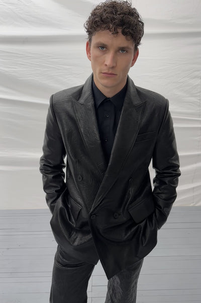 Cedric jacket by Kulakovsky crafted from crinkled leather with a distinctive texture and a soft matte sheen.
