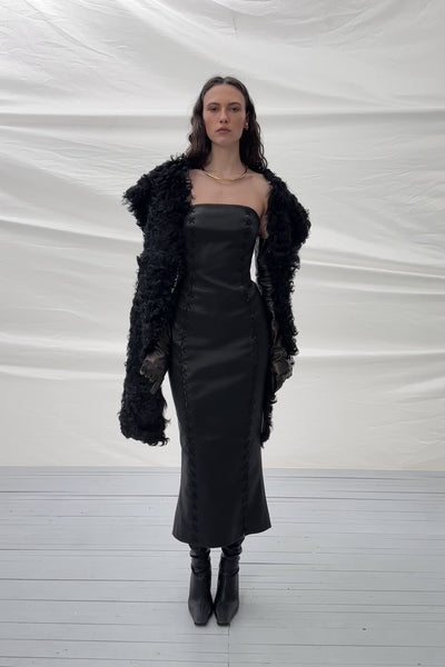 A dress by Kulakovsky crafted from stretch leather in black – a fitted midi-length silhouette.