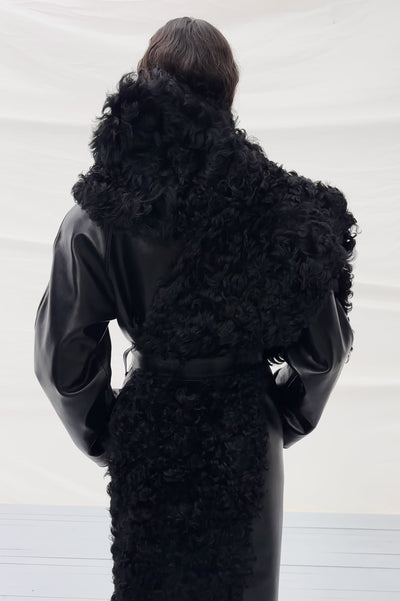 The Emma coat is a women’s leather coat . Featuring structured shoulders and a waist-defining belt, it is designed to elevate layered looks while adding a sense of drama and luxury. A statement piece that combines boldness with elegance, it’s perfect for women who appreciate refined style with a modern edge.
