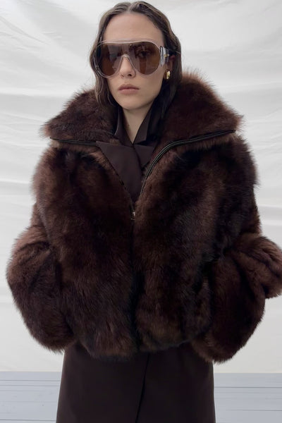 A bomber coat by Kulakovsky crafted from toscana shearling in a deep brown shade.