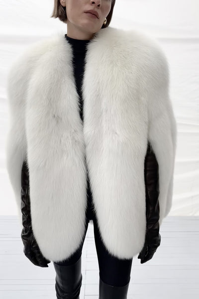 Біла шуба-кейп Kulakovsky з архівного хутра – м’яка, об’ємна та мінімалістична.